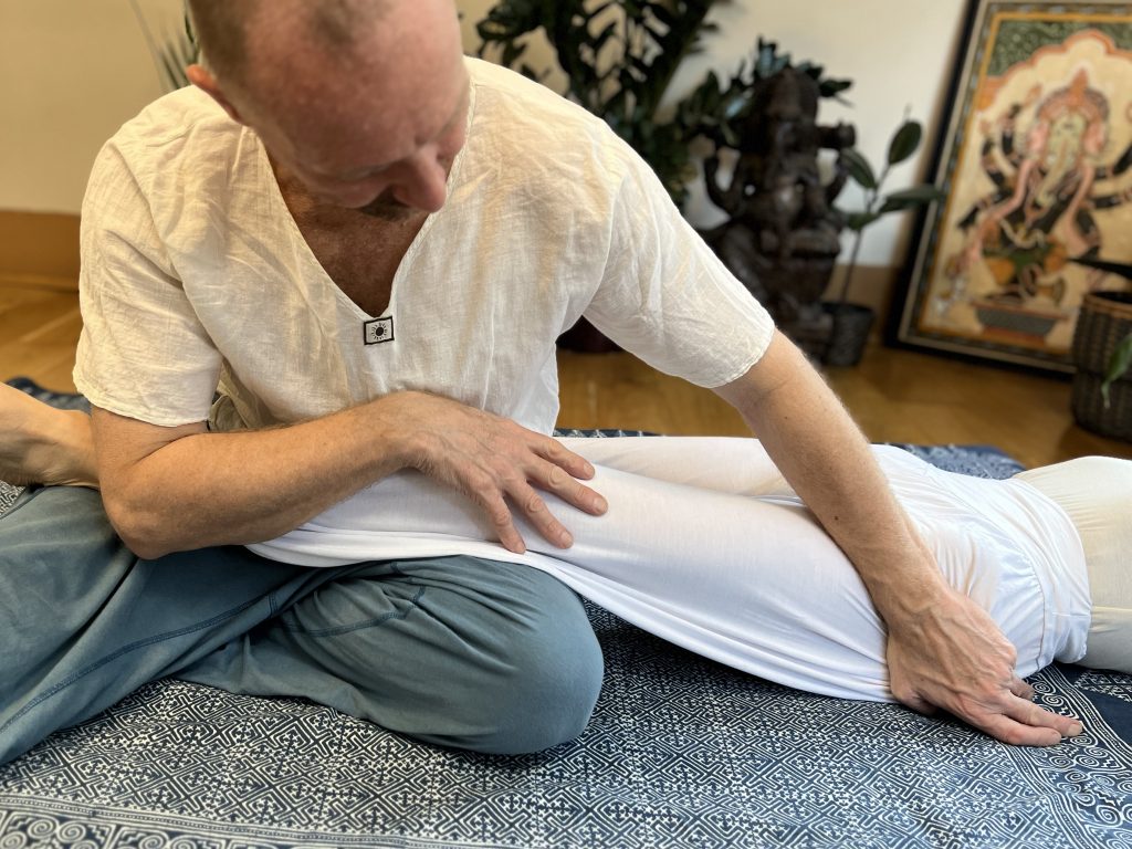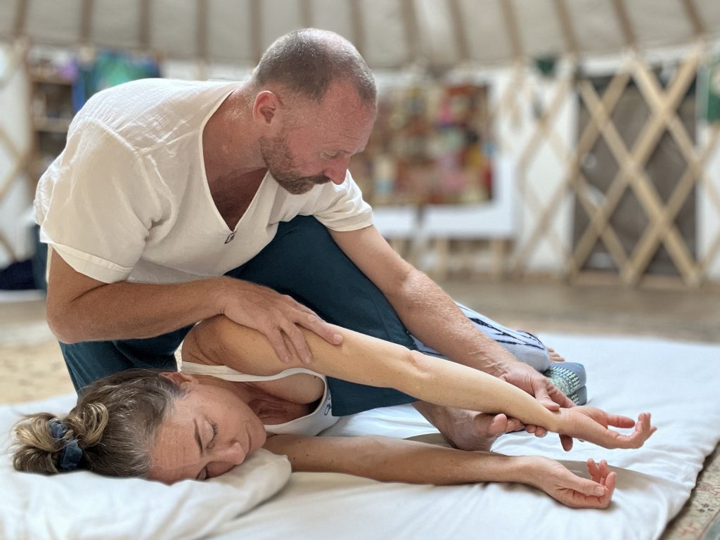 Thai Yoga Massage is embedded within Eastern health philosophy, focusing on the energy body with applied yoga and acu-pressure to improve circulation and release tensions.